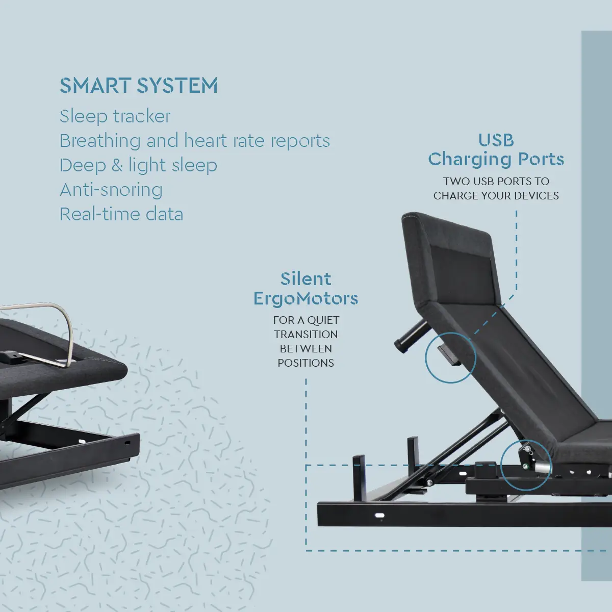 Automatic Anti-Snore Intervention: Sleep peacefully. The ErgoSmart actively detects snoring and automatically raises the head of the bed by 12º. This subtle shift improves airflow, reducing snoring and the effects of sleep apnea without waking you up.