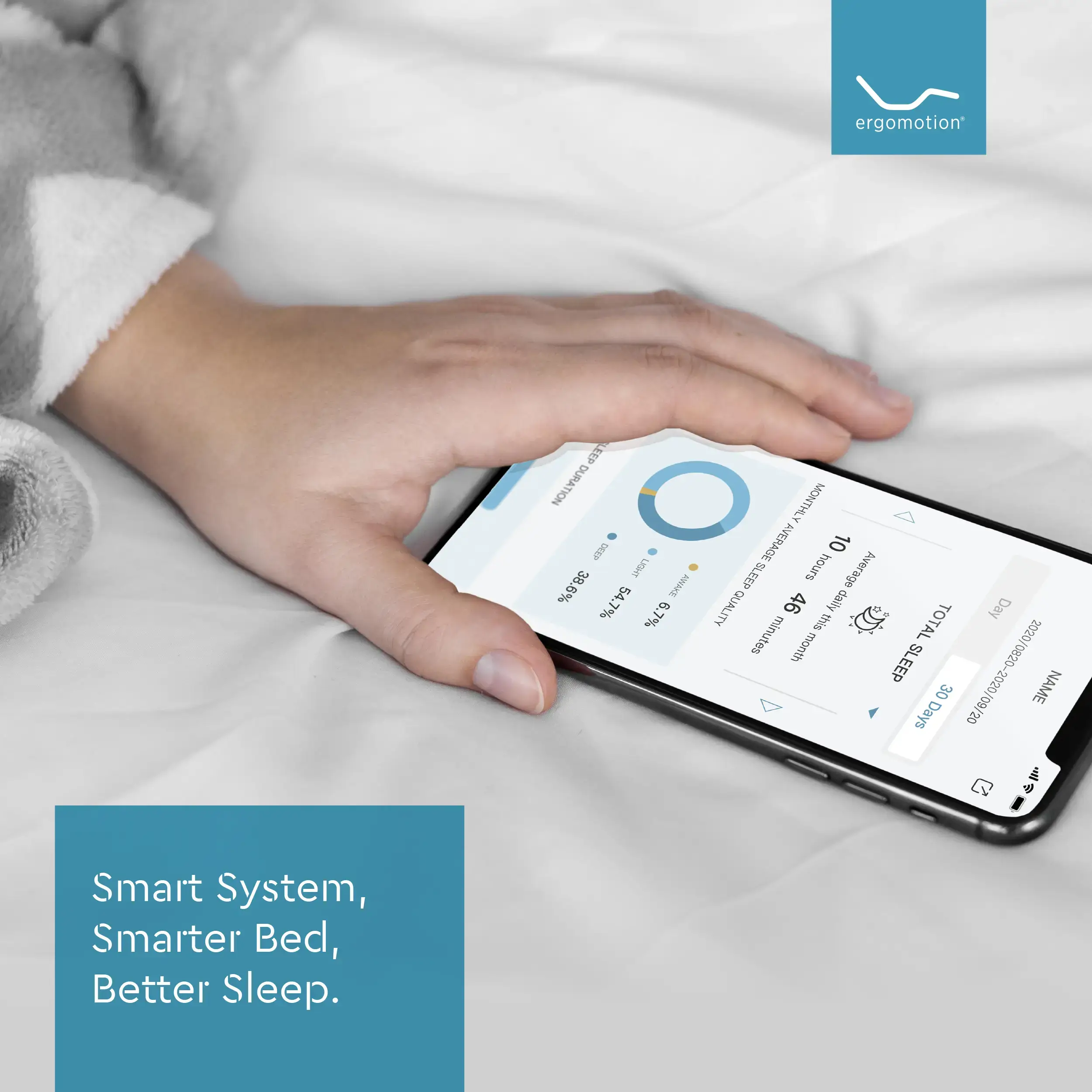 Ergomotion® Sleep App Integration: Easily manage your smart bed and access detailed sleep data directly from your smartphone via Bluetooth.