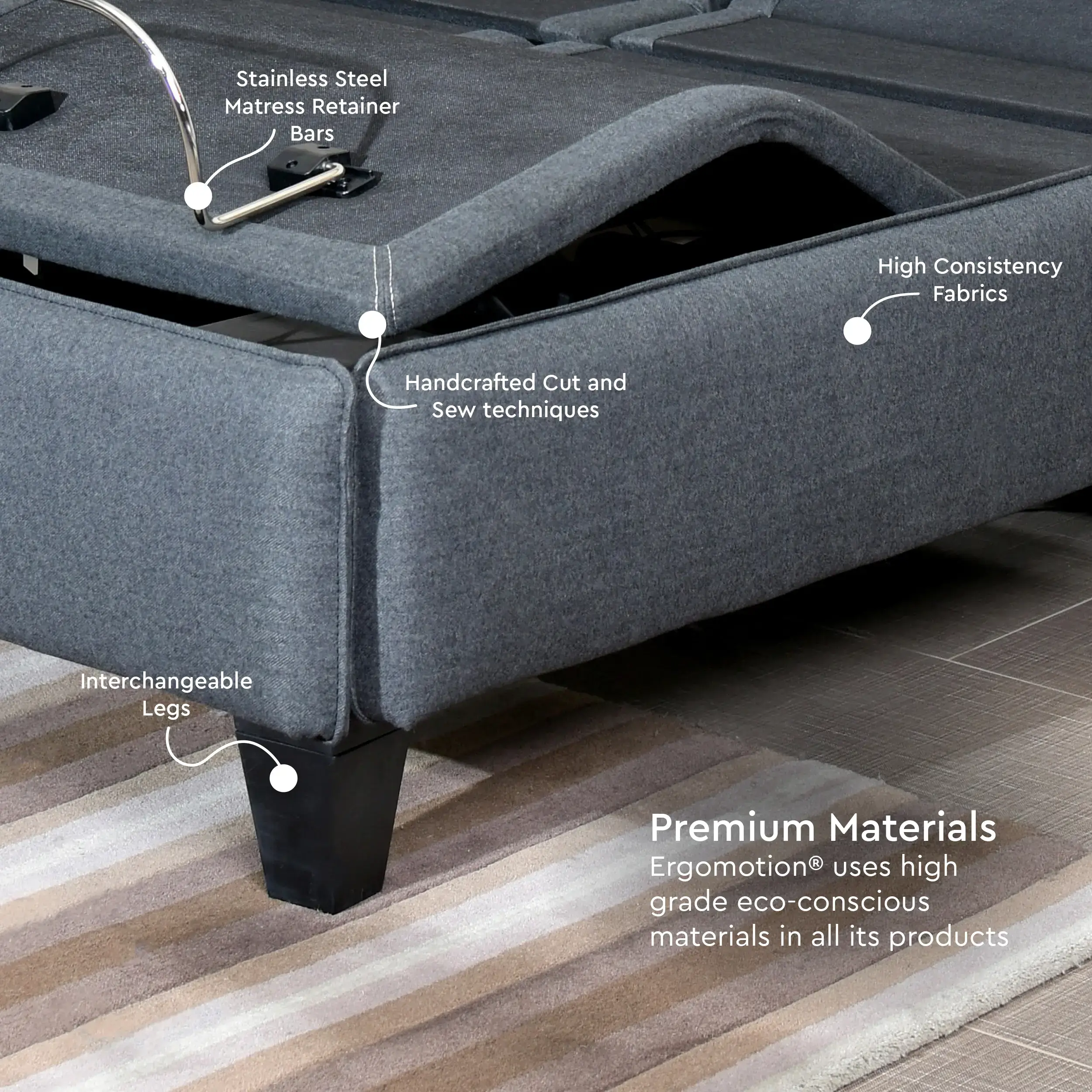 Silent Okin® ErgoMotors: Shift positions in complete silence. The premium drive motors ensure seamless articulation that will never interrupt your rest.
